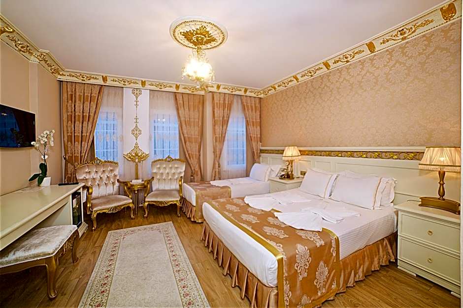 Located on the top floors, this superior room has king-size beds, wide LCD TV with satellite channels and private bathrooms. In each superior room there is a work desk and a coffee table, as well as tables, chairs and coffee&tea making facilities. The furniture has been designed to meet the needs of our guests while remaining loyal to the special Ottoman style of the hotel.
